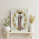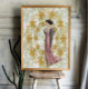 Linda Senhora da Belle Epoque em um longo vestido roxo cor-de-rosa com as coroas de ouro e papel de parede floral sobre o fundo