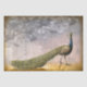 Um belo pavão vintage rolando e olhando para o céu noturno. Está nevando ou é estrela, você é o juiz. Rosas negras e brancas no fundo ou no céu.