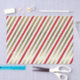 Papel de tecido de Natal com uma design diagonal de ouro, branco e vermelho.