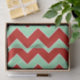 O padrão de natal na moda apresenta zigzags verticais vermelhos e verdes de menta alternados, separados por bordas brancas finas neste padrão geométrico em negrito. Imagem criada digitalmente. Copyright © Claire E. Skinner. Todos os direitos reservados.