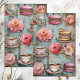 SEDA PAPEL DE TECIDOS DE DECOPÁGIO DO CHÁ E MACARÕES