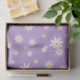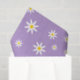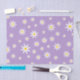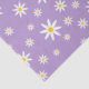 Um padrão de flores margaridas brancas com anéis amarelos em roxo.