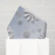 Design de papel de tecido elegante com flocos de neve estilizados em fundo prateado.