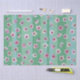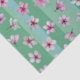 As flores de ameixa cor-de-rosa flutuam sobre listras verdes e aqua.