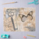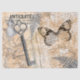 Chave de grande safra, borboleta, e fada com fundo de anúncios antigos e epemera de roteiro.