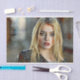 Mulher moderna exibindo metade da fotografia e metade da imagem ilustrada.