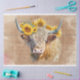 Descubra o charme da desvinculação com nosso adorável retrato da Vaca Highland. Abrace sua criatividade com girassóis vibrantes e fundo de guião de aquarela. Elevem seus artesanatos com este delicioso trabalho. Pegue o seu agora e traga alegria artística para todos os projetos.