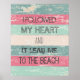 Conselhos pastéis aflitos em fundo com placa decorativa de verão personalizada "Eu segui meu coração e me levou à praia" para aqueles que amam o verão e querem expressá-lo com sotaques decorativos em casa