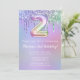 segundo aniversário convite de festas roxo, cor-de-rosa, pinga convite de festas segundo aniversário para uma menina de 2 anos com script moderno e balões de folha divertida.