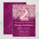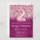 convite de festas para segundo aniversário de segundo aniversário Girly Magenta e Link Glitter para uma menina de 2 anos com roteiro moderno escrevendo e balões de folha divertida.
