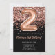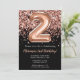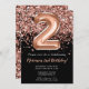 convite de festas de segundo aniversário preto Rosa negro Dourado brilhante Elegante preto e rosa de ouro para uma menina de 2 anos com roteiro moderno e balões de folha divertida.