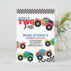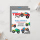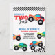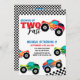 CRESCENDO DOIS CONVITES DE ANIVERSÁRIO RÁPIDOS DO CAMINHÃO DE MONSTRO. CAMINHÕES COLORIDOS COM CONVITE DE ANIVERSÁRIO DE CRIANÇA EDITÁVEL DE ESTILO DE RETRO DE ESTILO DE PADRÃO A PRETO E BRANCO