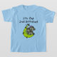 Três macacos pequenos, dois meninos e uma menina, e uma banana amarela grande em T-shirts de segundo aniversário Triplets, fato físico, sacos de tote, cartões, adesivos, ímanes e muito mais.
