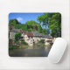 Mousepad com o castelo e a vila histórica catita do Ségur-le-Château com suas casas metade-suportadas ao lado do rio de Auvézère em Limousin, France.
