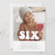 Um convite de 6 Aniversário com sua própria foto e a palavra 'seis' em uma fonte de estilo ranzinza sobre o topo. Perfeito para a sua Festa de aniversário com tema retrô!