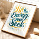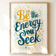 Radiar positividade com esta vibrante impressão de arte "Seja a energia que procura". Apresentando uma tipografia ousada e uma lavagem com aquarela de cores elevatórias, esta peça serve como um poderoso lembrete para cultivar a energia que você deseja atrair. Perfeito por adicionar um toque de inspiração e motivação à sua decoração de casa ou escritório.