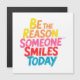 Dê mais atenção ao dia de alguém com este cartão de saudação alegre e eloquente com a inspiradora frase "Seja a razão que alguém sorri hoje" em letras vibrantes e coloridas. Quer você esteja dando a um amigo ou usando-o como um lembrete diário para liderar com bondade, este design transmite uma mensagem de encorajamento, alegria e boas vibrações.