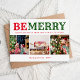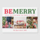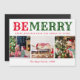 Cartões de foto de Natal magnéticos personalizados com um modelo simples para personalização. Este design festivo bonito apresenta tipografia de FELIZ BE em cores verdes e vermelhas. A saudação abaixo diz "Feliz feriado da nossa família para a sua". Personalize-o com 3 fotos da família, seus nomes e o ano. Use as ferramentas de design para escolher qualquer cor de fundo, editar as fontes e cores do texto ou adicionar mais fotos para criar uma única de um tipo de Cartões de foto de Natal.