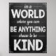 NUM MUNDO ONDE VOCÊ PODE SER QUALQUER COISA - SEJA GENTIL! Poster para usar em uma sala de aula, no escritório de conselheiros, no escritório principal ou no escritório de trabalho social escolar. Uma mensagem de excelente e um design apresentam uma tipografia atraente nos olhos de um fundo falso de quadro.
