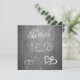 Valentines em estilo de quadro negro com coração e saudações manuscritas em giz na frente do cartão. As áreas restantes estão disponíveis gratuitamente.