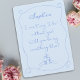 Torne a sua proposta de madrinha inesquecível com este chic e sofisticado cartão "Você será minha coisa azul?". Este elegante design apresenta uma delicada fronteira azul com sotaques cardíacos brancos e uma mensagem sincera que diz, "Eu não posso dizer 'Eu faço' sem você! Você será minha coisa azul?" Perfeito por adicionar um toque de tradição com uma reviravolta moderna, esta carta é uma bela maneira de pedir aos seus entes queridos que façam parte do seu dia especial. Personalize-o com o nome deles para um toque especial extra. Ideal para noivas que querem combinar elegância clássica com estilo contemporâneo.