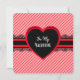 "Seja minha Namorados" começa com um padrão de riscas vermelhas e brancas, e termina com um grande coração mostrando texto de sua escolha, aparado com fitas e rendas pretas.
