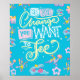 Poster de design de turquesa engraçado com a citação, "Seja a mudança que você quer ver." Perfeito para sala de aula, dormitório ou escritório. Vários tamanhos disponíveis.
