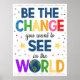 SEJA A MUDANÇA QUE VOCÊ QUER VER NO MUNDO Um poster excelente para pendurar em uma sala de aula, escritório de assistentes escolares, terapeuta infantil ou escritório de psicólogos infantis para lembrar às crianças que elas podem começar a mudar o mundo agora com elas mesmas! Um lembrete de excelente e uma mensagem de excelente! Um poster muito bonito para decorar a sala de aula ou o escritório de conselheiros com - com cores divertidas, brilhantes e alegres.