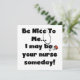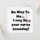 Enfermeira T-shirts, canecas, cartões, autocolantes, botões, bolsas e outros presentes amamentados com um estetoscópio e texto que diz "Seja gentil comigo.. Talvez um dia seja sua enfermeira!".