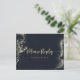 Este cartão postal rsvp, escolha do cartaz de cor dourado, é perfeito para um casamento rústico. O design apresenta uma abertura dourada pintada manualmente em um fundo azul escuro.