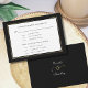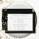 Este script preto em branco com uma borda dourada e preta é uma placa rsvp elegante e um cartão de seleção de menu. O fundo tem um fundo preto com os seus nomes e uma amante dourada. Pode ser usado para casamentos, renovações de votos ou aniversários