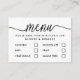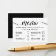 Personalize facilmente estes cartões de seleção de menu com o seu próprio texto, usando a seção "personalizar este modelo" ou clique no link "personalizar mais" para alterar os estilos de fonte, as cores e o layout para o conjunto. Há também espaço na parte de trás do cartão para adicionar mais texto ou uma foto da sua escolha.