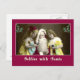 Um cartão de Natal bonito justapõe o passado com o presente. Imagem fotográfica do Papai Noel com duas meninas, atualizada para mostrá-las com seus smartphones. A legenda diz "Selifes com Papais noeis". Este design está disponível em placas de dois tamanhos, com envelopes ou postais (sem envelopes). Conceito de design copyright Scarebaby Design. Apoiado pela garantia Zazzle. Este cartão foi concebido e criado por Scarebaby Design, agosto de 2014.