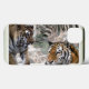Bela arte digital com dois tigres com efeito 3D aparentando saltar do quadro. Lado de fundo com girafa e zebra. A maravilhosa arte animal selvagem faz uma maravilhosa ideia de presente para amantes da vida selvagem.