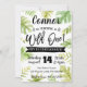 Celebrar a Selvagem com um tema da selva no primeiro aniversário. Convite com aquarelas folhas da selva e zebra listradas para trás