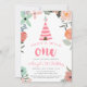 Adoráveis convites para o seu primeiro aniversário selvagem... um boho boral e uma ilustração rosa. "Ela é selvagem" aparece em letras de pêssego, com seus detalhes de festa de aniversário embaixo.