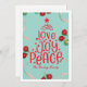 Envie cartões de natal com este belo cartão de Natal de Joy da Paz de Amor ou de feriado. Basta adicionar seu nome e impressão via Zazzle, ou fazer o download e impressão instantaneamente.