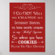 Uma mensagem Sem Solicitação de excelente, "Eu não quero mudar meu servidor de Internet, minha empresa de segurança doméstica ou meu sistema de crenças, assim, a menos que você tenha cookies, por favor, não perturbe" criado com algumas fontes de excelente, em um fundo vermelho profundo com decoração de vintage, em um formato 10x14 ou 5x7.