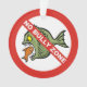 Sinal proibido por causa de peixe zangado intimidando um pequeno. Texto personalizado no verso.