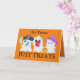 Aqui estão três fantasmas adoráveis que as crianças vão adorar. Eles já estão prontos para o Halloween, mas prometem “Sem Truques, APENAS GULOSEIMAS”. Dentro do cartão há uma área para você adicionar sua mensagem personalizada.
