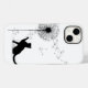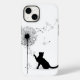 Silhueta de gato preto sobre fundo branco com dandelion e sementes. A cor de fundo pode ser alterada.