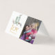 Pinho rústico com neve e cartão de saudações de festas de temporada de aquarela de abeto com flocos de neve em brilho dourado sobrepostos personalizáveis com sua própria foto.