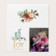 Pinho rústico nevado e aquarela de abeto cartão de cumprimentos de época natalícia com flocos de neve com brilho dourado sobreponível personalizável com sua própria foto.