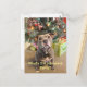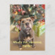 As palavras neste cartão dizem, "o que é a senha, papai noel?" Este cartão engraçado do Natal mostra nosso nariz azul considerável Pitbull nomeado Sarge com um olhar adorável em sua cara enquanto guarda a árvore de Natal e a apresenta… mesmo do papai noel.