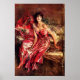 Giovanni Boldini Lady em Red poster. Pintura a óleo na canvas. O artista italiano Giovanni Boldini criou alguns dos retratos mais espantosos do início do século XX. Lady in Red é uma de suas obras mais famosas, e apresenta uma mulher com cabelo escuro vestindo um vestido vermelho espantoso com uma grande rosa de corsagem. Atrás dela está uma buquê vermelha de rosas. Um presente bonito para fãs de Giovanni Boldini, arte italiana e impressões de safra.