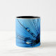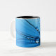 Uma imagem azul bonita, brilhante de gotas de água em uma semente do dente-de-leão intitulou da "elogios senhora Canto Azul" acima esta caneca de café.