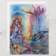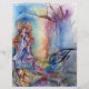 Colorida, espirituosa, romântica, simbólica, pintura contemporânea de aquarela em azul-claro, rosa, vermelho, roxo, violeta, branco para uma lenda espiritual, mística celta de Alessandro Lumini 1989. Este design legal e artístico também é um belo presente para ocasiões especiais, aniversários, casamentos, Natal, feriado, Dia de os namorados Época de Gras (Terça-feira gorda). Vivien, esta misteriosa fêmea deu a espada a Arthur, Excalibur. Ela roubou Lancelot quando ele era criança e o curou quando ele ficou louco. Ela pode ser uma divindade do lago Celta na origem, talvez do mesmo tipo que as fadas do lago Gwagged - no folclore do galês moderno. Vivien pode muito bem ter sido a Dama do Lago nas Lendas e histórias de Arthurian. Ela, às vezes chamada Nineve, Nimue, Niniane etc., é mais conhecida como a mulher que selou Merlin em uma caverna ou em uma árvore.