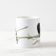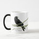 Um corvo que senta-se em um ramo em ambos os lados da caneca com as palavras "senhora louca do corvo" embaixo.
