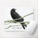 Um corvo que senta-se em um ramo com as palavras "senhora louca do corvo" embaixo.