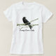 Um corvo que senta-se em um ramo com "a senhora louca do corvo" embaixo.